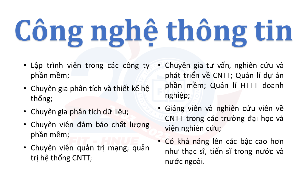 Thực hiện công tác Chuyển đổi số của Trường Đại học Sư phạm Hà Nội, Trung tâm Công nghệ Thông tin – Trường Đại học Sư phạm Hà Nội thông báo tuyển thực tập sinh ngành Sư phạm tin học, Công nghệ thông tin như sau: